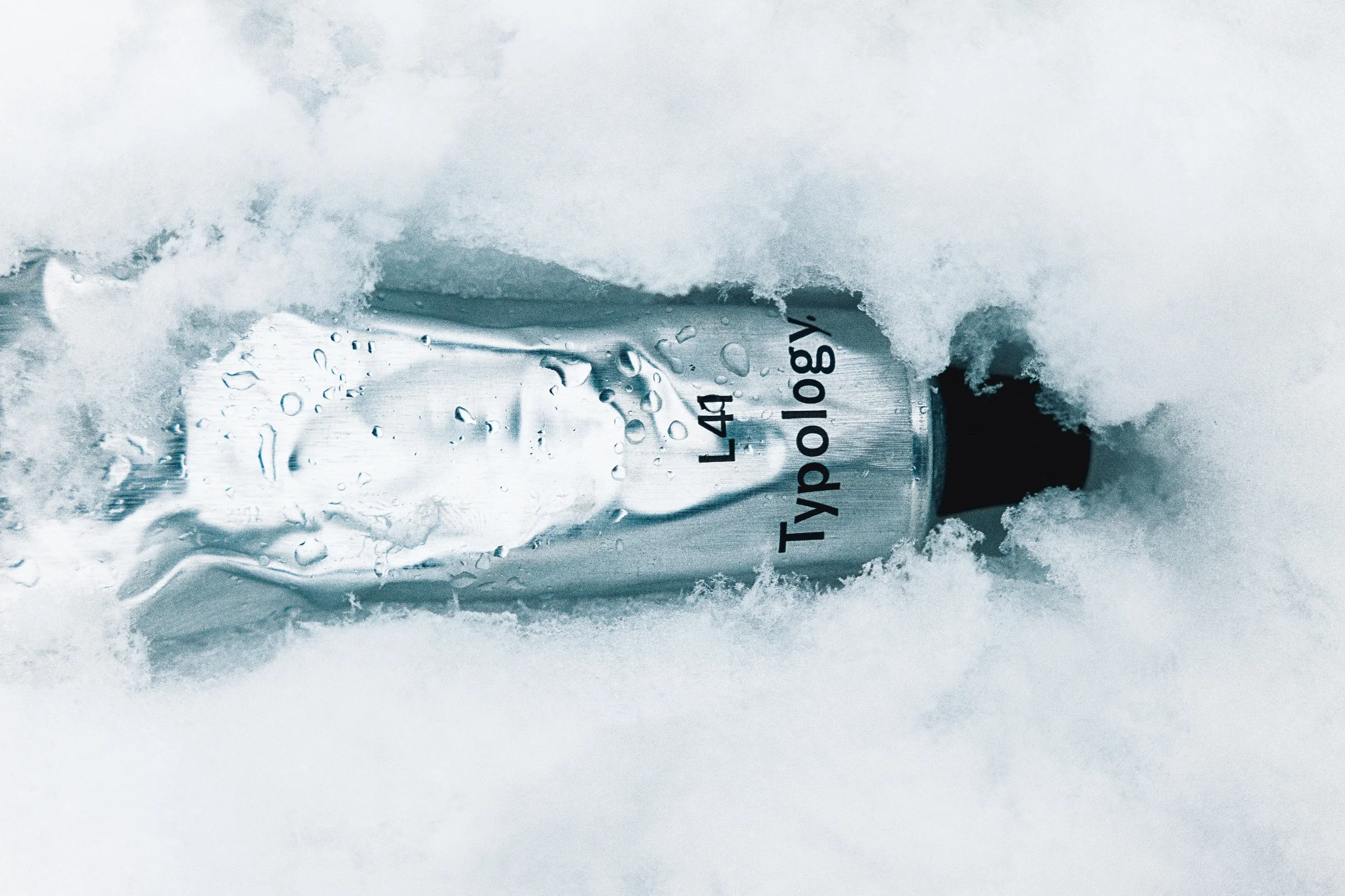 Tube de crème Typology plongé dans la neige