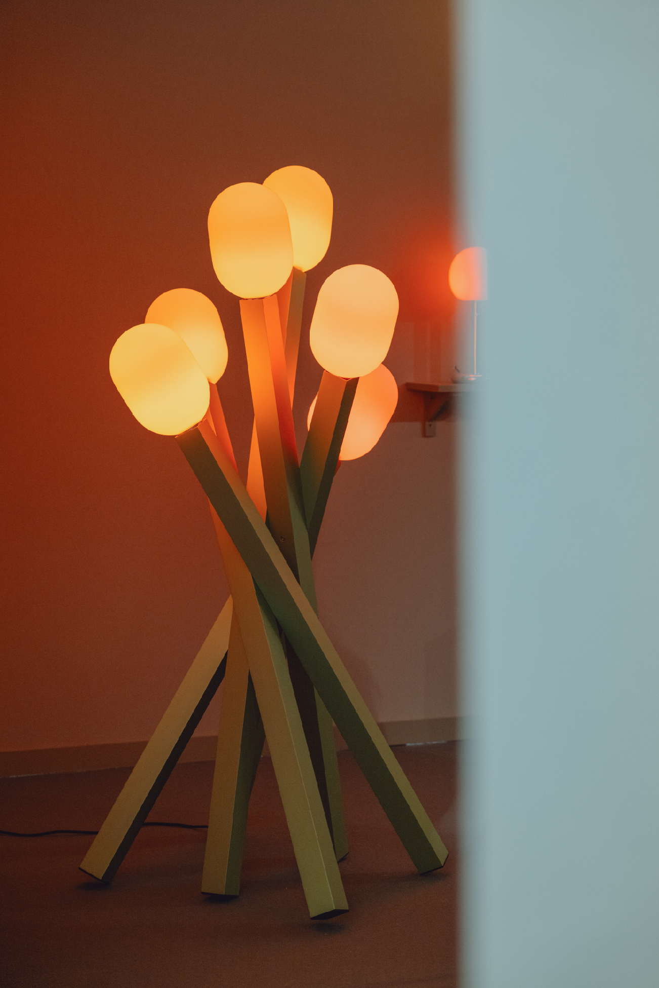 Luminaire Campfire, de la marque Grau, ressemble à une brochette d'allumettes formant un feu de camp